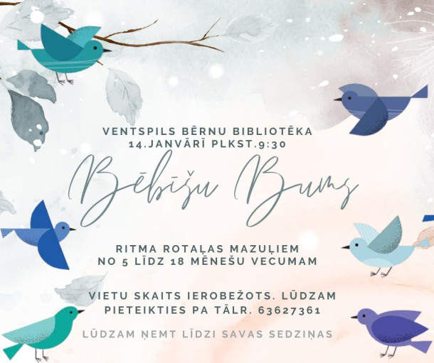 14. janvārī, plkst. 09.30 Bērnu bibliotēkā notiks ritma rotaļas mazuļiem no 5 mēnešu vecuma līdz pusotram gadam “Bēbīšu bums”