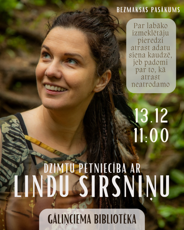 13. decembrī, plkst 11.00 Gāliņciema bibliotēkā ciemosies dzimtu pētniece Linda Sirsniņa. Pasākumā Linda dalīsies ar savu pieredzi dzimtas izmeklēšanā, un kā atrast neatrodamo.