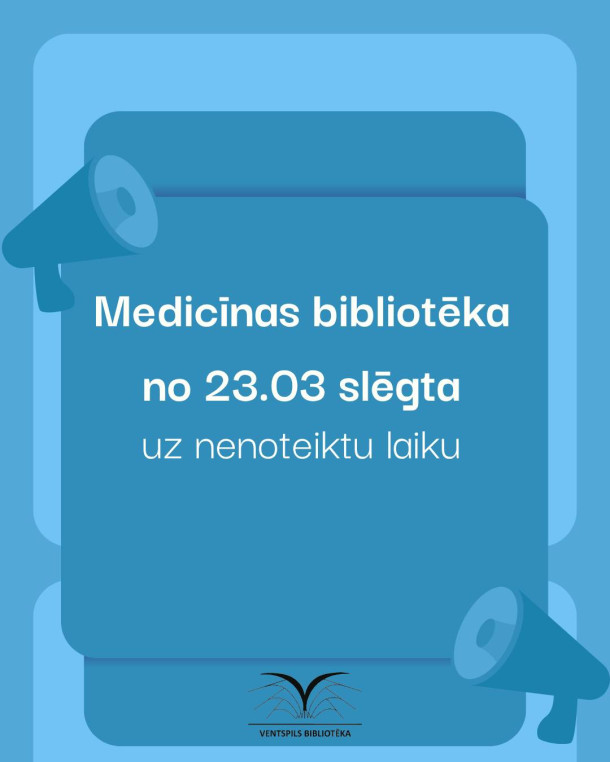 Informējam, ka Medicīnas bibliotēka no 23. marta slēgta uz nenoteiktu laiku Informējam, ka Medicīnas bibliotēka no 23. marta slēgta uz nenoteiktu laiku. Paldies par sapratni! 23.03.2026.