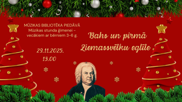 Sestdien, 29. novembrī, plkst. 13.00 Ventspils mūzikas bibliotēkā notiks īpaša Mūzikas stunda ģimenei “Bahs un pirmā Ziemassvētku eglīte”, kas paredzēta vecākiem ar 3 – 6 gadus veciem bērniem.