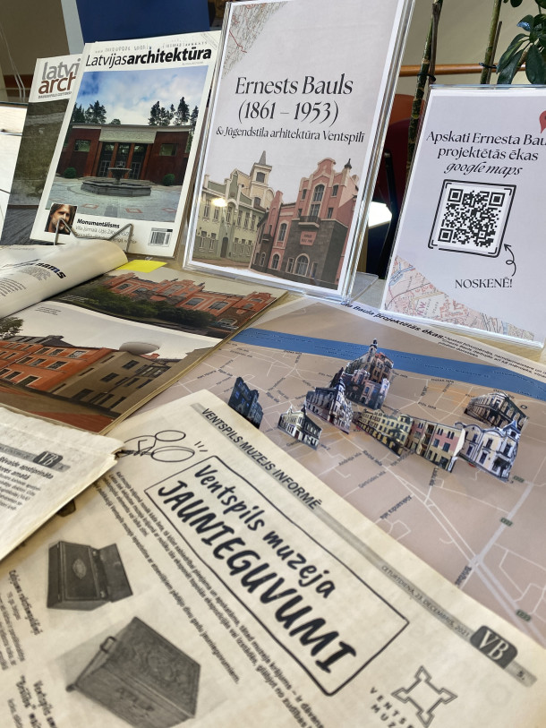 Atzīmējot Ernesta Baula 165. gadu jubileju Ventspils Galvenās bibliotēkas novadpētniecības sektorā apskatāma izstāde, sniedzot ieskatu Ventspils kultūrvēsturiskajā mantojumā, uzmanību pievēršot pilsētas arhitektūrai un sabiedriskajai dzīvei 20. gadsimta sākumā. Izstādē izvietotajos informācijas resursos ikvienam interesentam ir iespēja iepazīties ar Ventspils jūgendstila namiem un to autoriem, īpaši izceļot būvuzņēmēja Ernesta Baula nozīmīgo lomu pilsētvides veidošanā. Būtiska vieta atvēlēta Ventspils Latviešu biedrības namam, kas mūsdienās pārtapis par moderno Jaunrades namu, saglabājot savu izglītojošo funkciju. Resursi vēsta arī par vietējo amatnieku brālību tradīcijām, muzeja krājuma dārgumiem un pilsētas attīstību dažādos vēstures posmos.