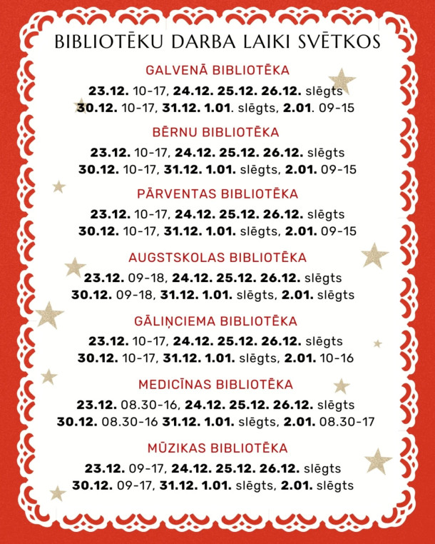 Ventspils bibliotēku darba laiks svētkos